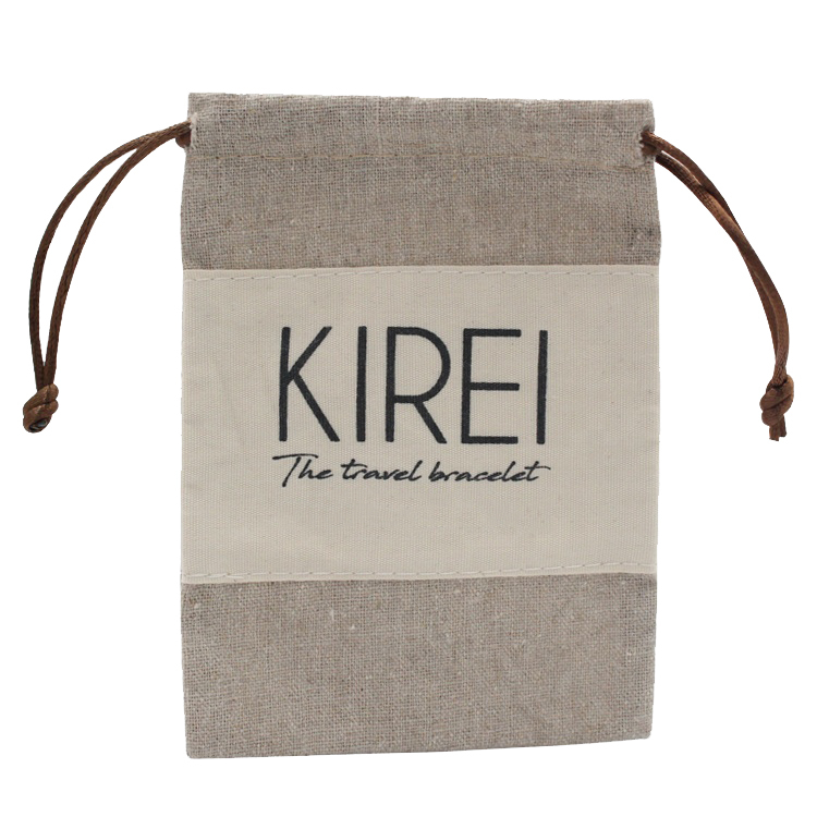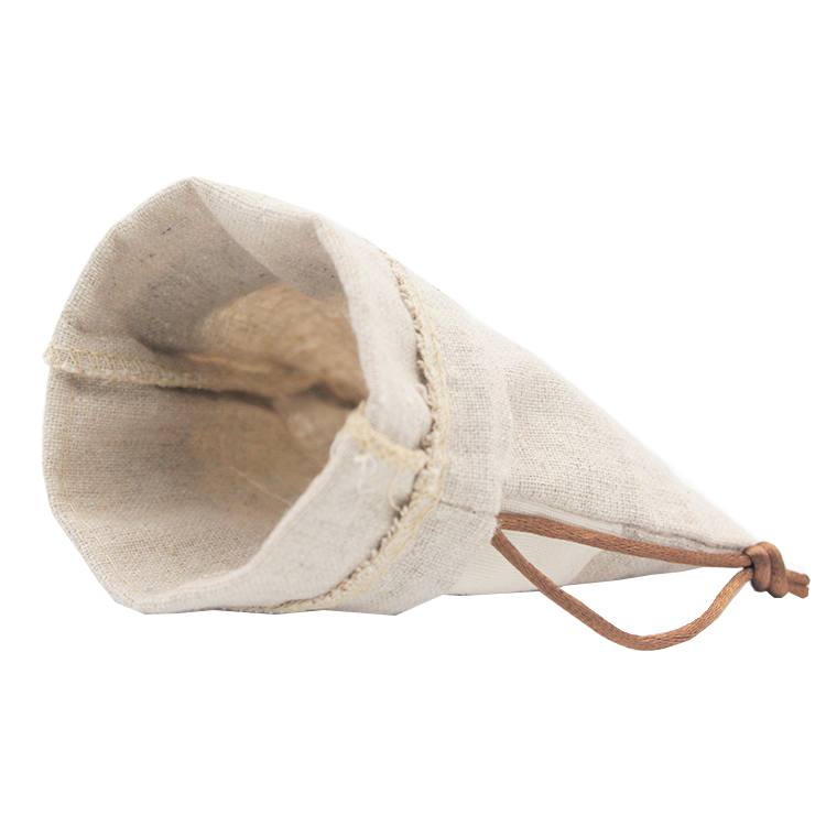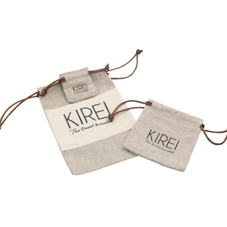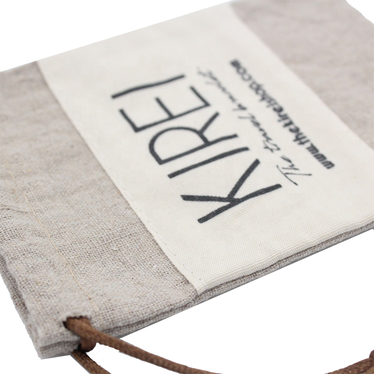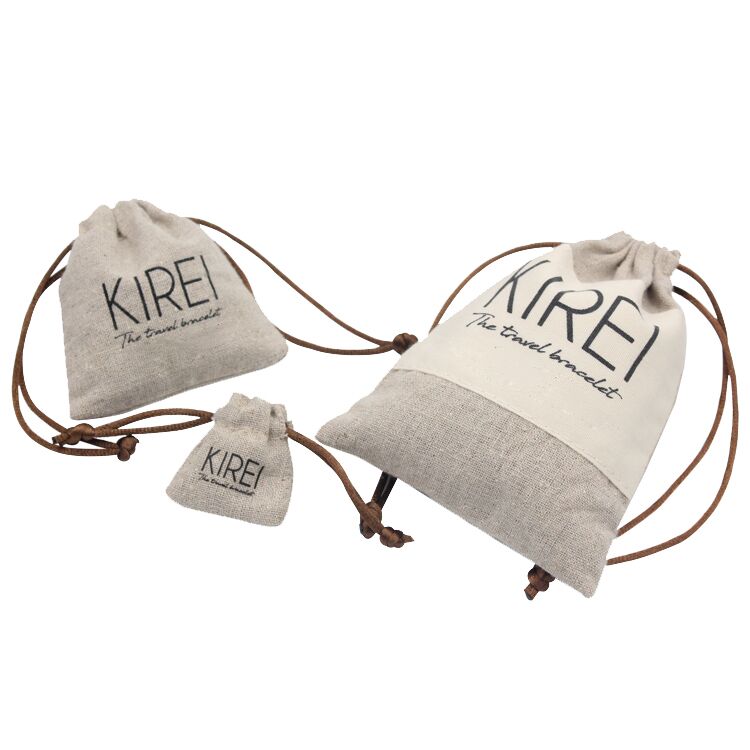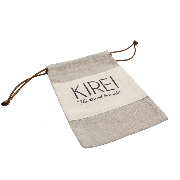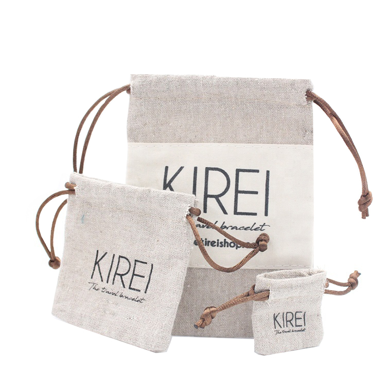 Three sizes for different usage choices, custom logo natural cotton linen drawstring pouch for sale