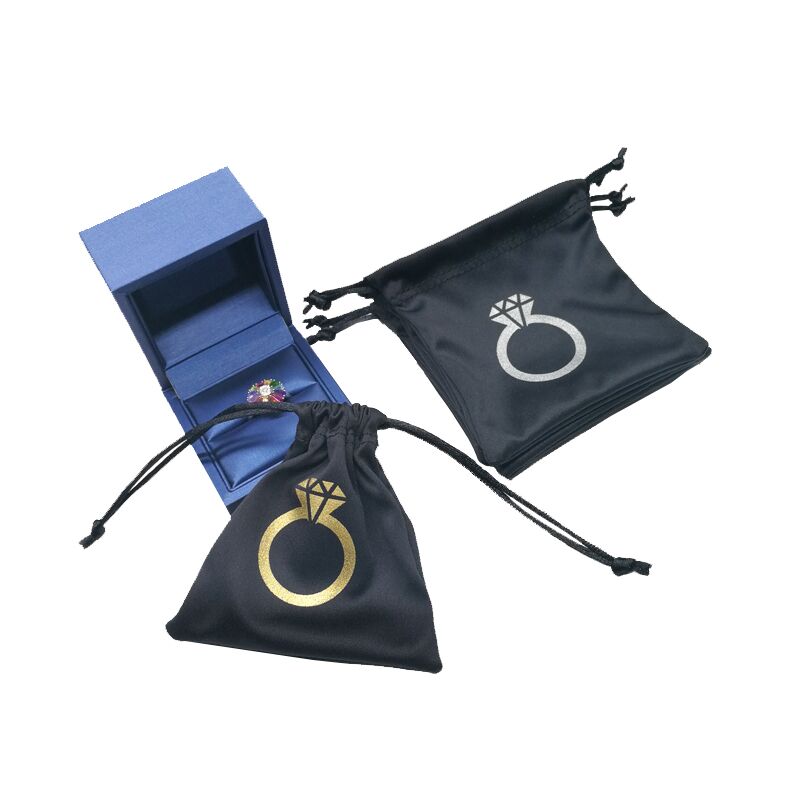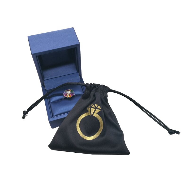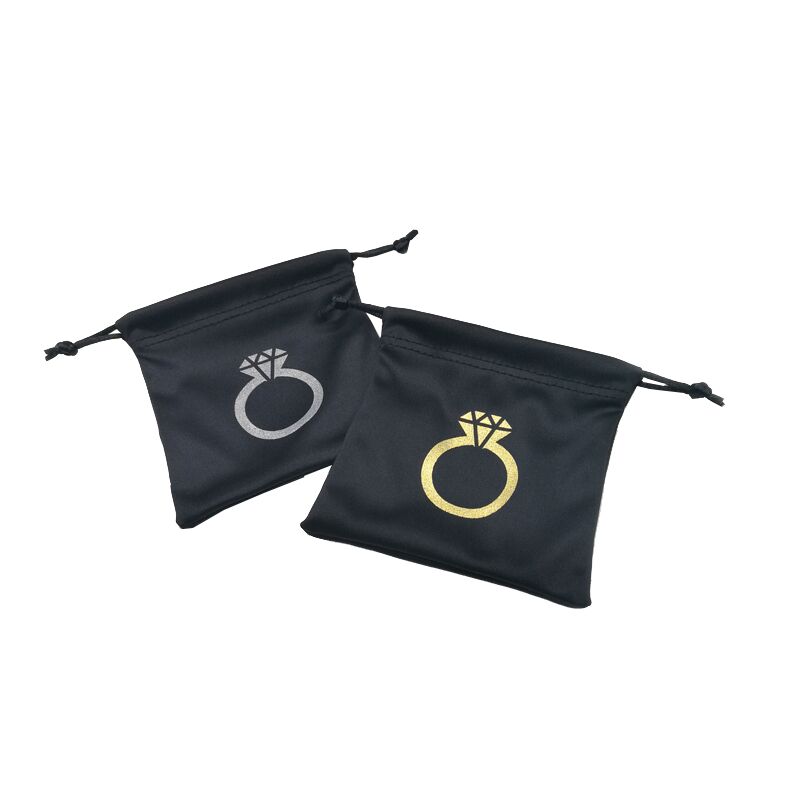 Silver Logo Printed Black Color PU Leather Ring Pouch